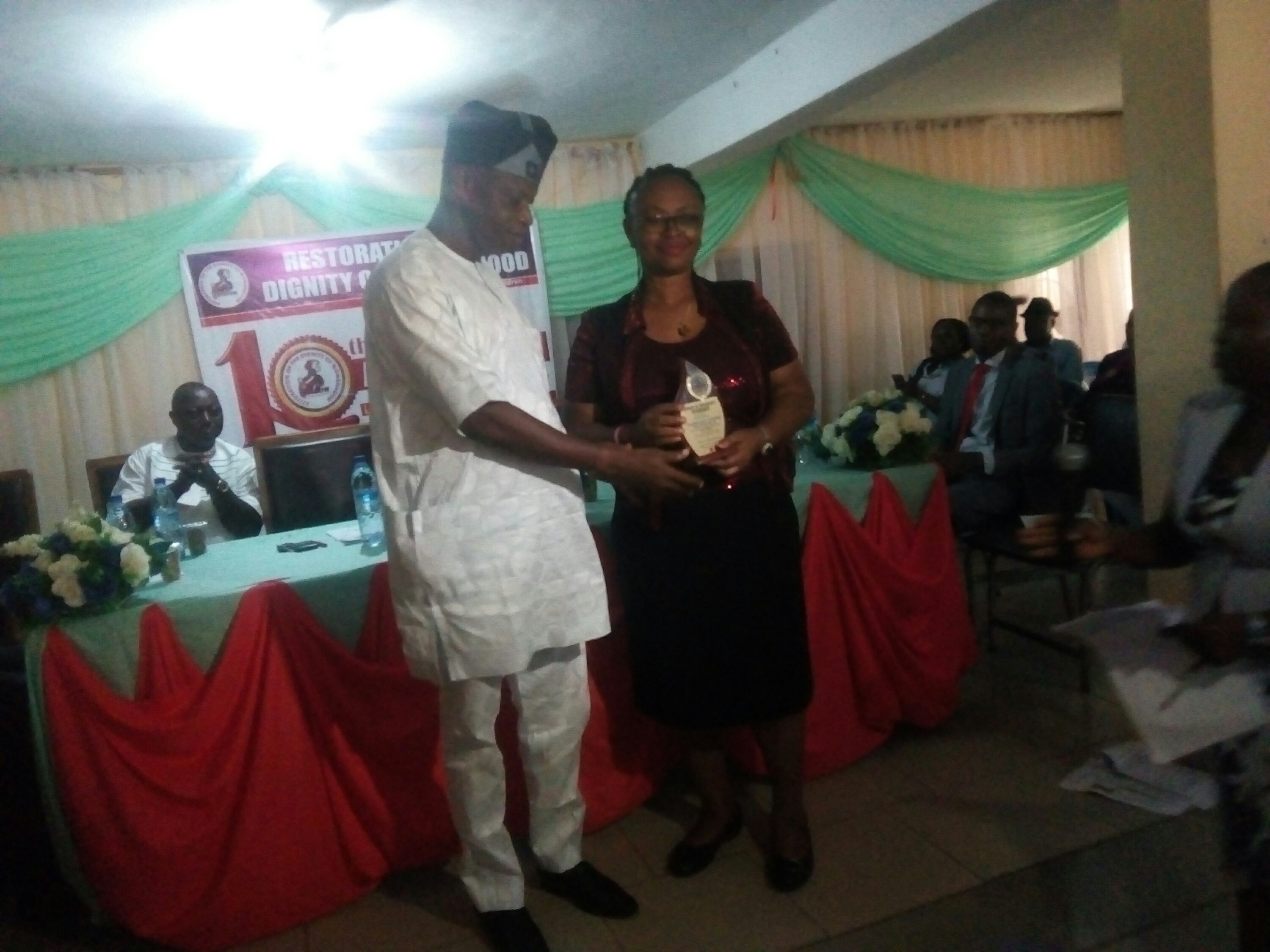 As parts of the activities to mark its 10th years anniversary of humanitarian services, the Restoration of the Dignity of Womanhood, ROTDOW, has honoured notable personalities for their contribution to the welfare of women and children in Ondo state, including the wife of Ondo state governor, Arabirin Betty-Anyanwu Akeredolu.