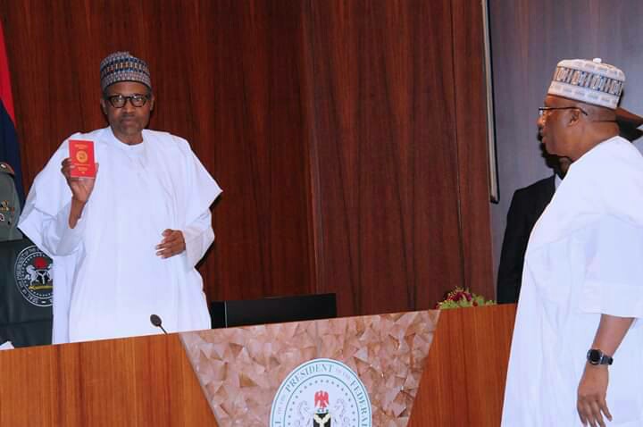 The passports were presented by the Minister of Interior, Abdulrahman Dambazau, and the Comptroller General of Nigeria Immigration Service, Mohammed Babandede.