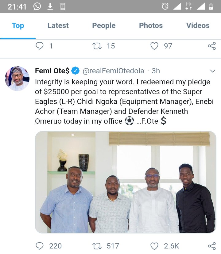 Otedola made good his promise on Tuesday, as revealed by the Nigeria Footbal Federation via its verified Twitter handle @thenff.