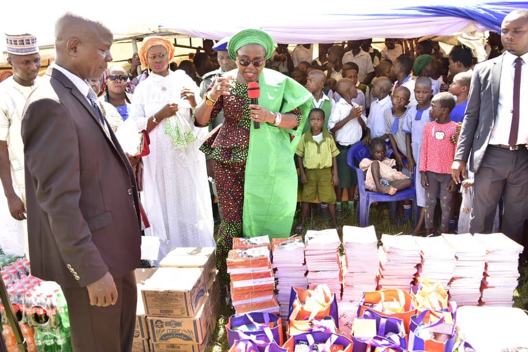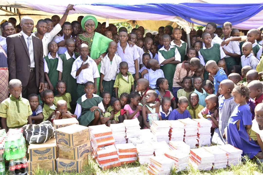 Wife of the Ondo State governor, Arabinrin Betty-Anyanwu Akeredolu today led her entourage to Auga Akoko community to distribute learning materials to the school children for the annual Back-to-School programme.