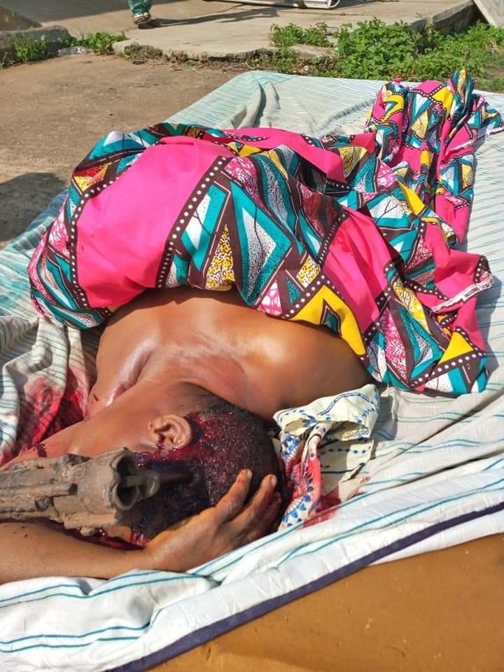 According to one of the mourners, the axe that was used to kill the 69year-old woman, Mrs Bosede Yakubu, was still hanging on her head as at the press time.