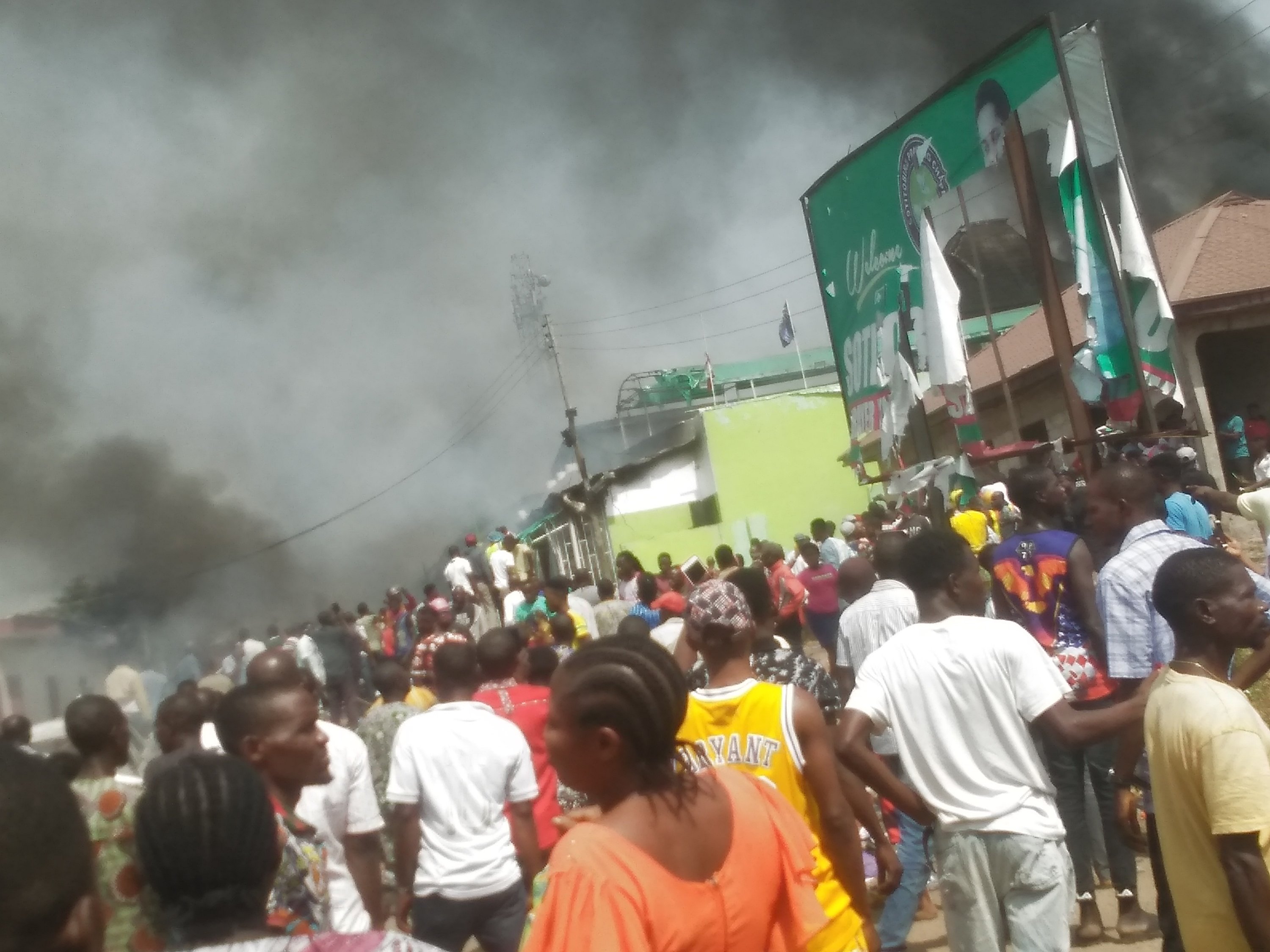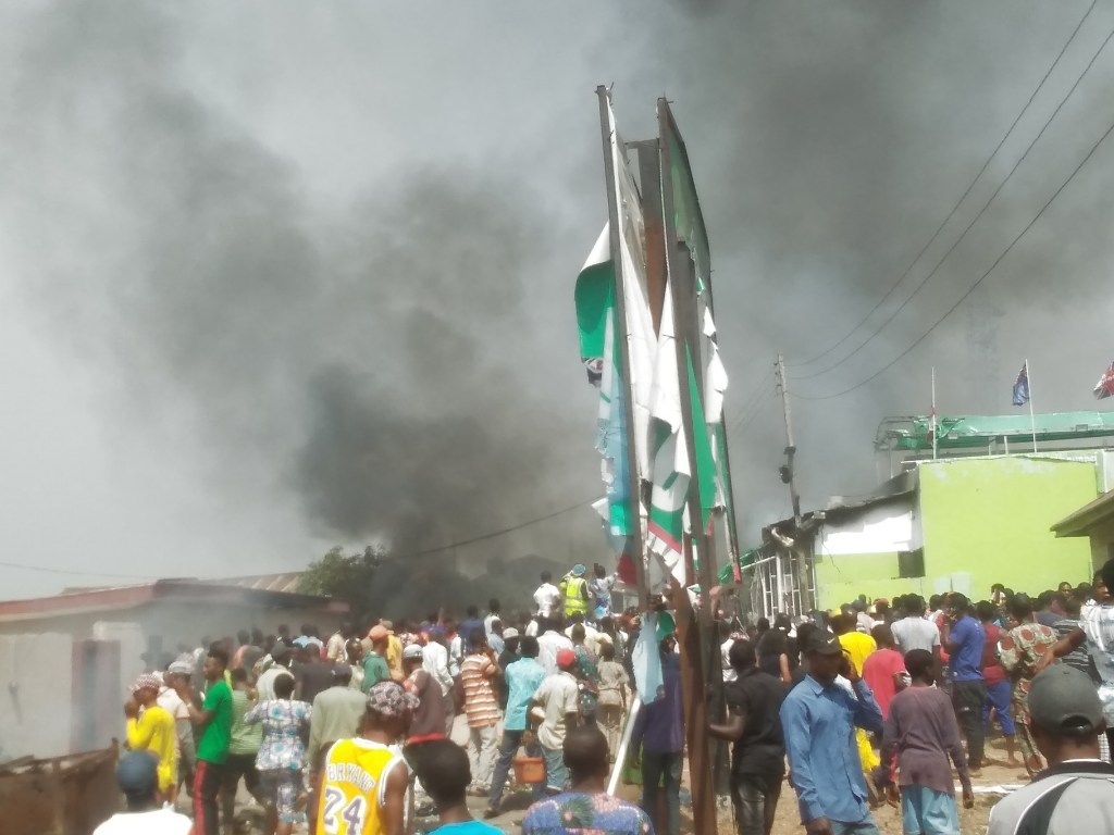 This led to the intervention of the men of the Nigerian Police who made efforts to prevent them, and it turned bloody; a Policeman shot at one man, others retaliated and killed him, and the situation became unmanageable, until the whole building was burnt.
