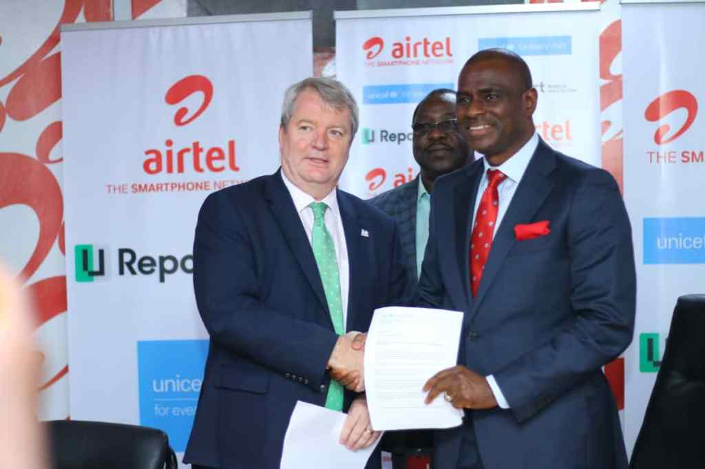 The United Nation Children’s Fund, UNICEF has signed an agreement with AIRTEL Nigeria to further expand telecommunication services to boost U-Report, UNICEF’s unique social media platform that empowers young people and communities with information to transform their communities and drive positive change on a wide range of issues affecting them.