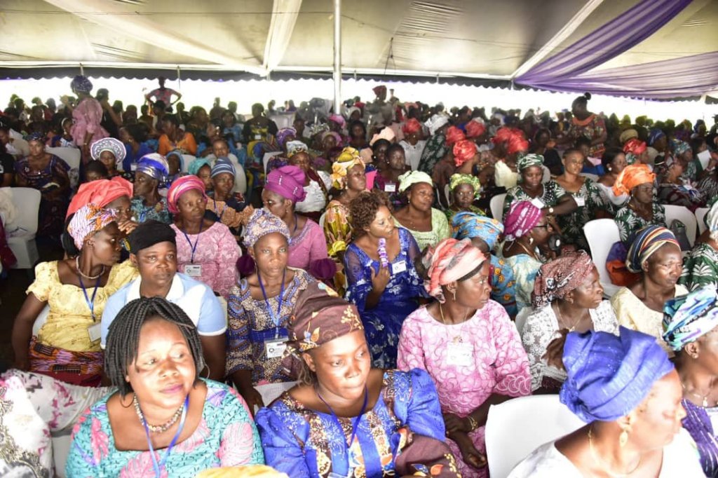 Thousands of women across the 18 local government areas of Ondo state today converged on the government house grounds, Alagbaka Akure to receive lectures, and gift items for the grandfinale of programmes organised by the wife of the governor, Arabinrin Betty-Anyanwu Akeredolu to celebrate the 2020 International Women’s Day.