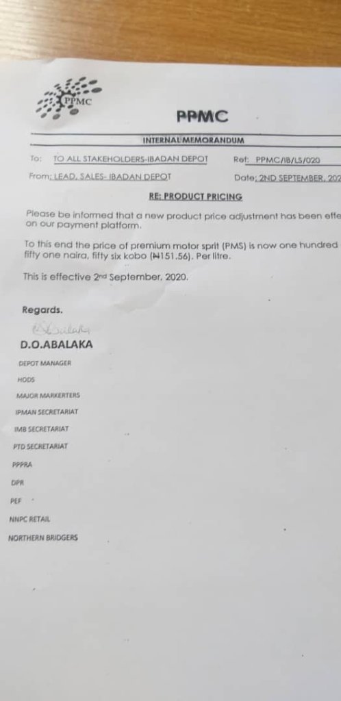 The Pipeline and Product Marketing Company, PPMC, a subsidiary of the NNPC has announced an increase in the Premium Motor Spirit, popular known as Petrol from N143 to N151 per litre.