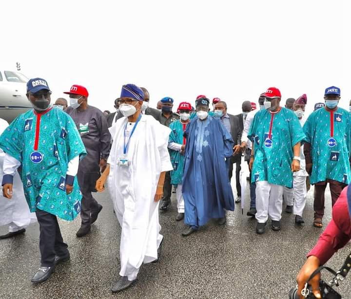 In an entourage led by the national Leader of APC, Asiwaju Bola Ahmed Tinubu, they were earlier ushered by Akeredolu to commission some landmark projects executed by him before they moved to the Sport Stadium for Flag-off ceremony.