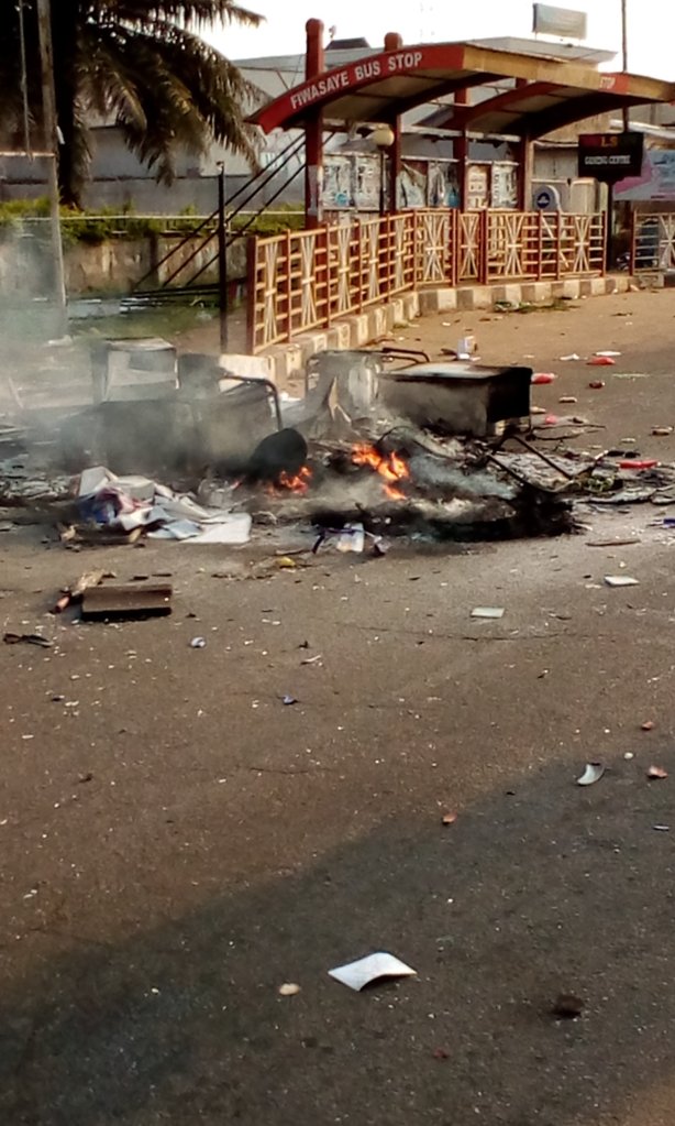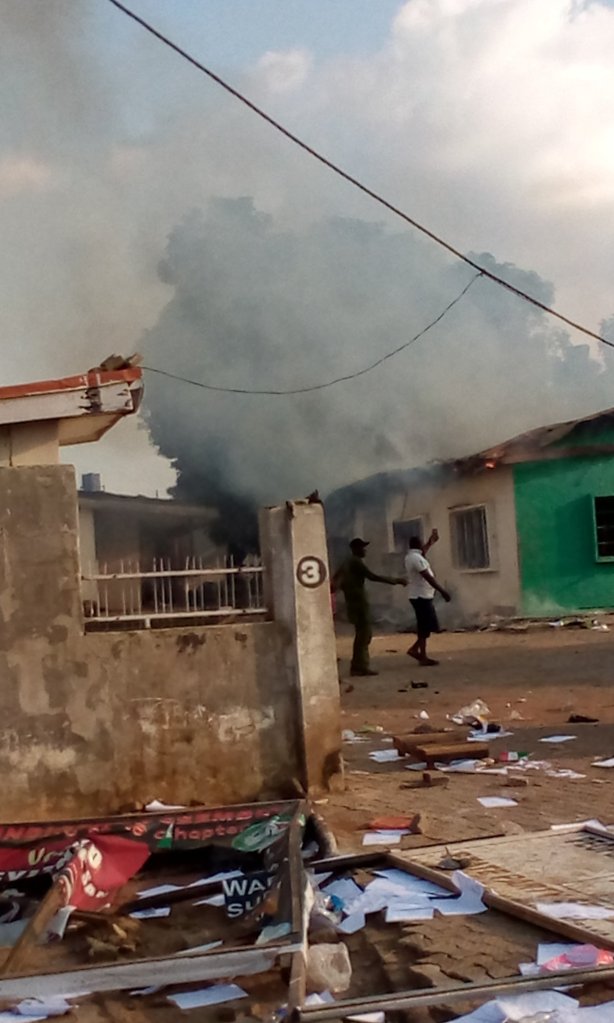 They set ablaze the party secretariats of the People’s Democratic party PDP in Alagbaka, and the All Progressive Congress party along Oyemekun road.
