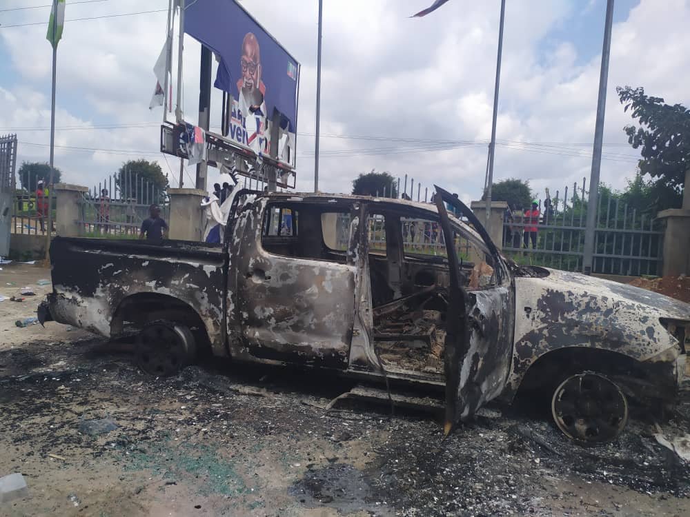 The hoodlums looted and set ablaze the APC and the PDP Secretariats, the State governor campaign office, and other public property across the state.