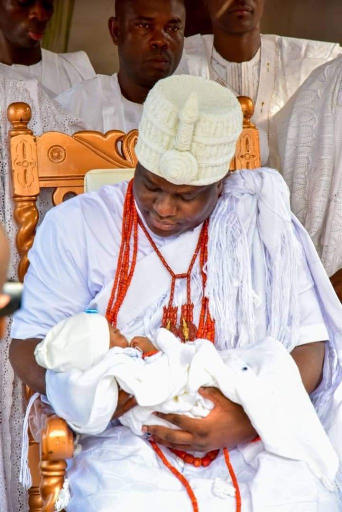 The Ooni of Ife & Arole Oodua, Ooni Adeyeye Enitan Ogunwusi, Ojaja II, on Tuesday received his crown prince Tadenikawo Adesoji Aderemi Ogunwusi, releasing his pictures to the public.