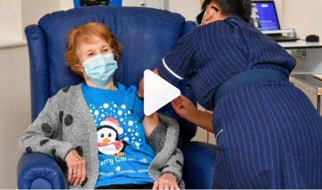 The first Briton to get the Pfizer/BioNTech vaccine — 90-year-old Margaret Keenan — received the first of two doses at 6:31 a.m. local time on Tuesday at University Hospital in Coventry, less than a week after the UK became the first country to approve it.