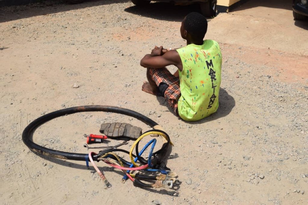 He affirmed that Owolabi Taiwo aged 27years was arrested along with a huge Electrical Armoured Cable and some tools being used to perpetrate the evil act hence, efforts are on top gear to apprehend the three other Suspects who are currently at large.