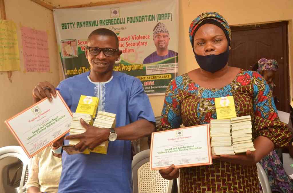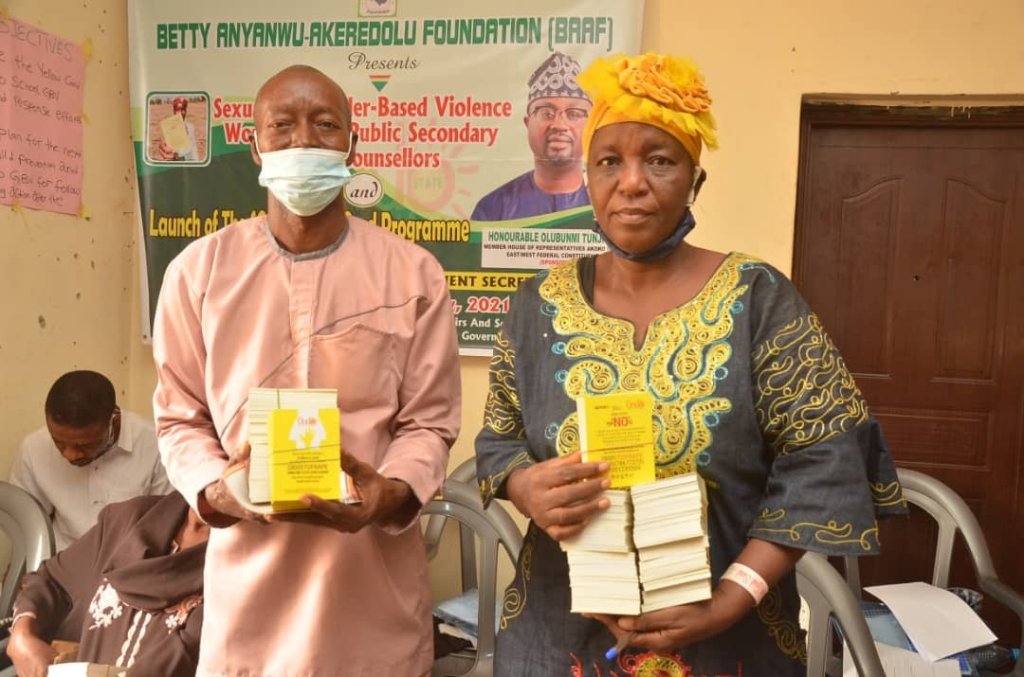 As the four days workshop on Sexual and Gender-Based Violence (SGBV), for Public Schools Counsellors in Akoko North West and East ends today, the wife of Ondo State Governor, Arabinrin Betty Anyanwu-Akeredolu has instructed the participants to go back to their various schools and effect changes by establishing anti-SGBV Club.