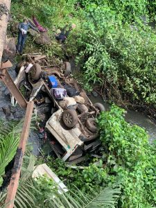 The new wife was said to have been seriously injured in the accident. It was gathered the bus marked Lagos AAA 859 XC plunged into the Owena river, killing the driver and five others.