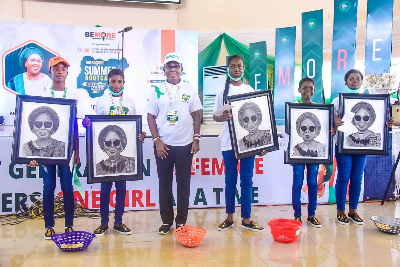 The closing activities featured Art Auditioning where 10 girls crafted the portrait of the First Lady of Ondo State and Founder of the Initiative, Chief (Mrs) Betty-Anyanwu Akeredolu; five focused on Shredded paper work, while the other five did a pencil work. These girls came to the camp as novices.