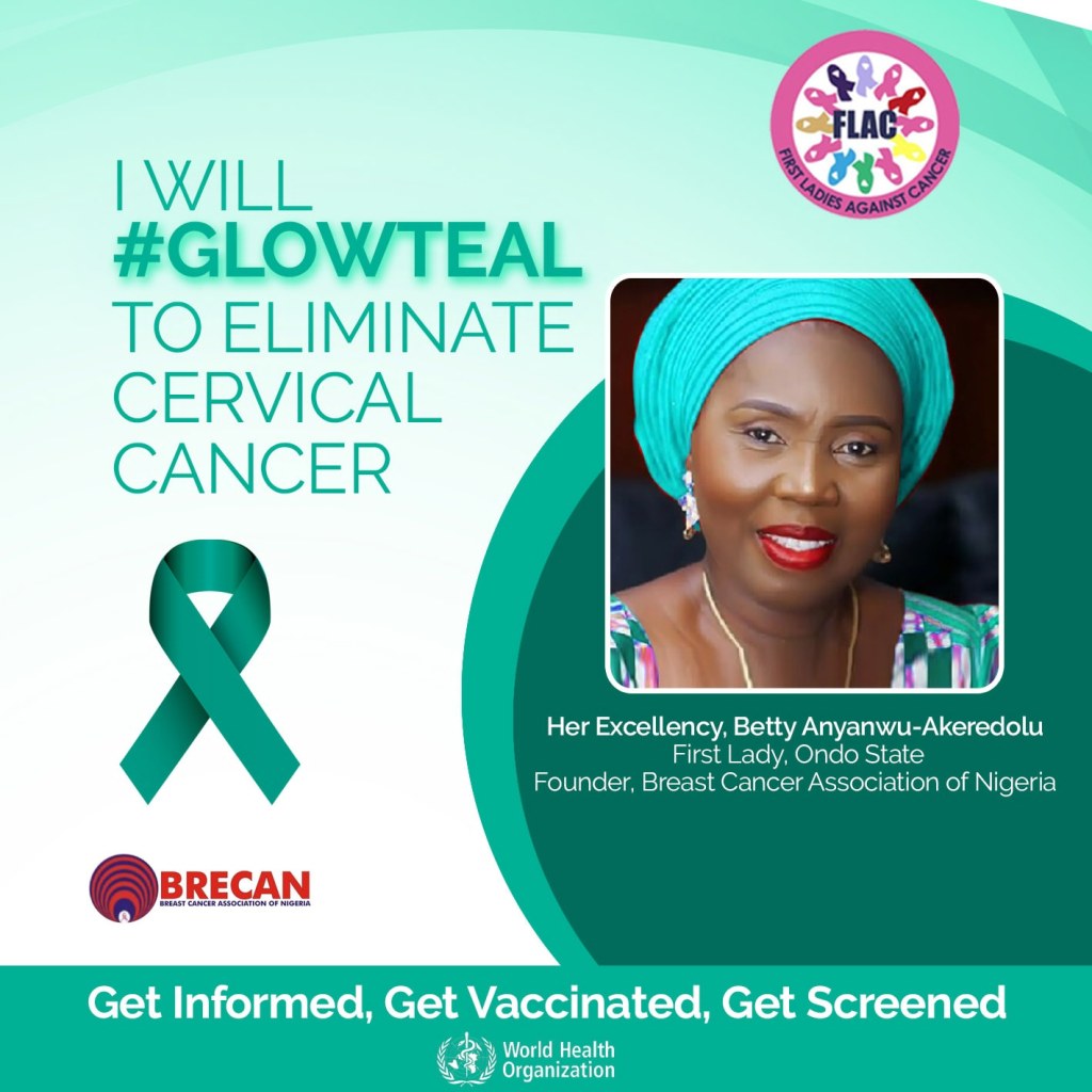 The Office of the First Lady of Ondo State is working actively with the Ondo State Ministry of Health, Ondo State Primary Health Care Development Agency, Ondo State Hospital Management Board, Ministry of Women Affairs, Breast Cancer Association of Nigeria (BRECAN), Clinton Health Access Initiative (CHAI), the World Health Organisation (WHO), and First Ladies Against Cancer (FLAC) to promote qualitative cervical cancer care in Ondo State.