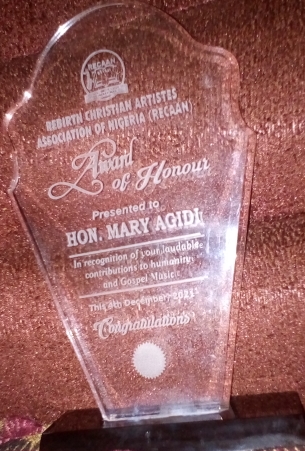 Presenting her the award, the Chairperson of the RECAAN’s board of trustees, L/Evang. Omodudu Victoria, noted that the honour was in recognition of her laudable contributions to humanity in her little way, and her love for gospel music.
