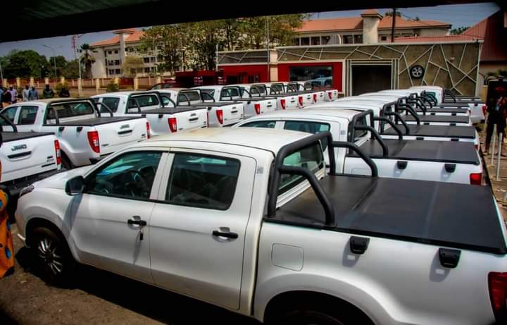 Ondo State Governor, Arakunrin Oluwarotimi Akeredolu, SAN, has distributed 18 Units of JMC Pick Up utility vehicles for the use of the 18 Local Government Chairmen across the state.