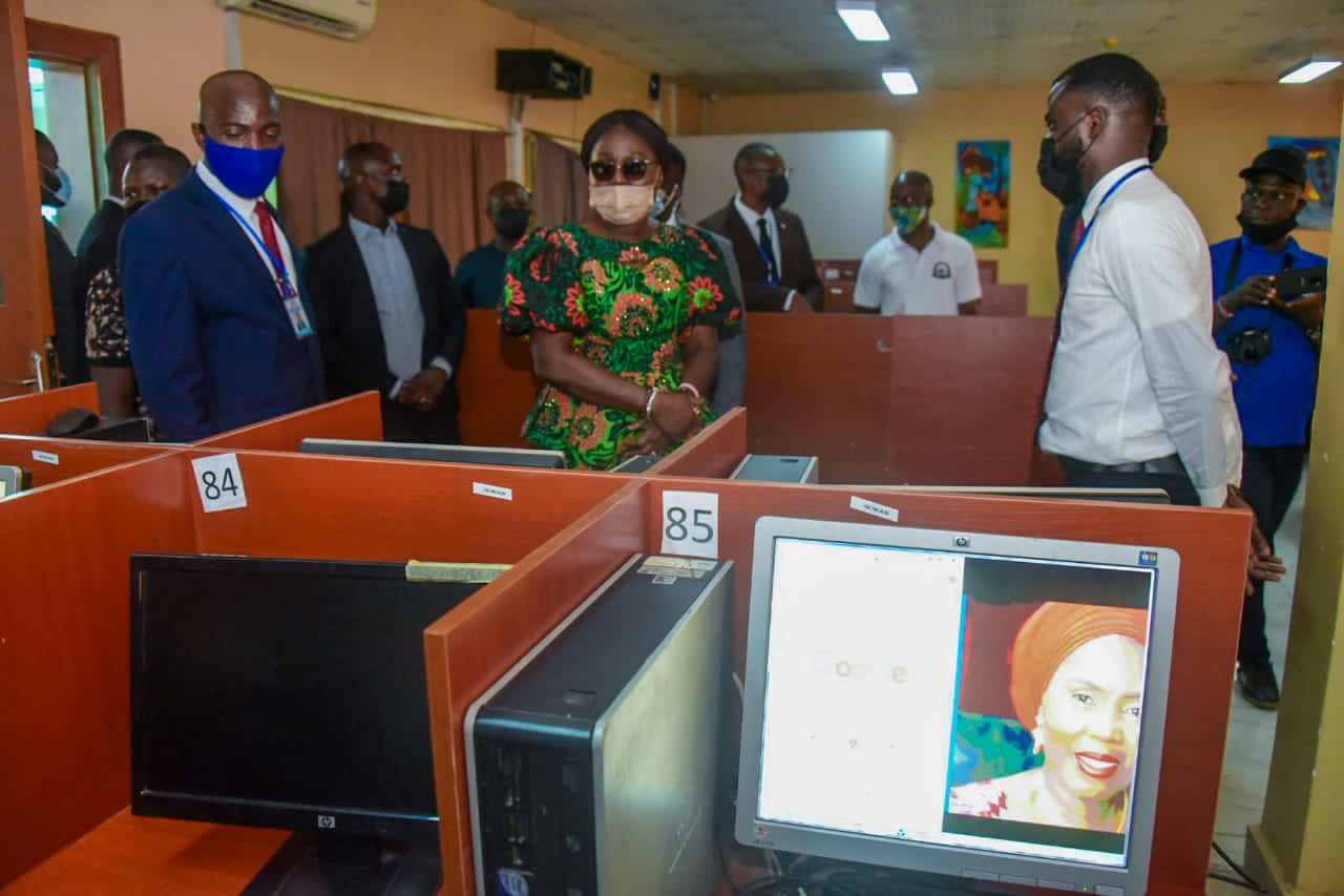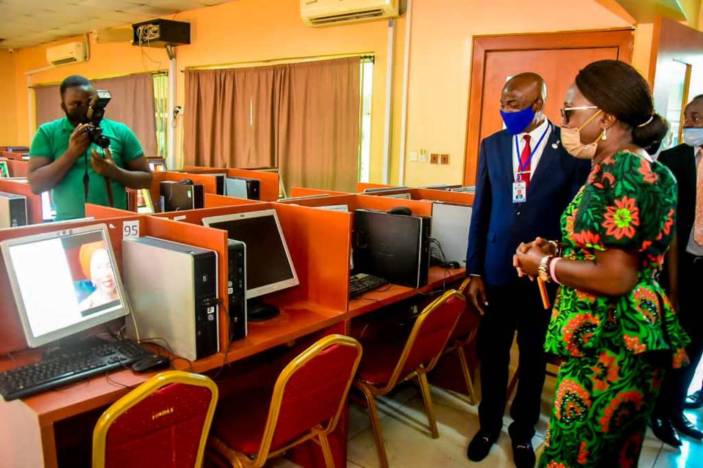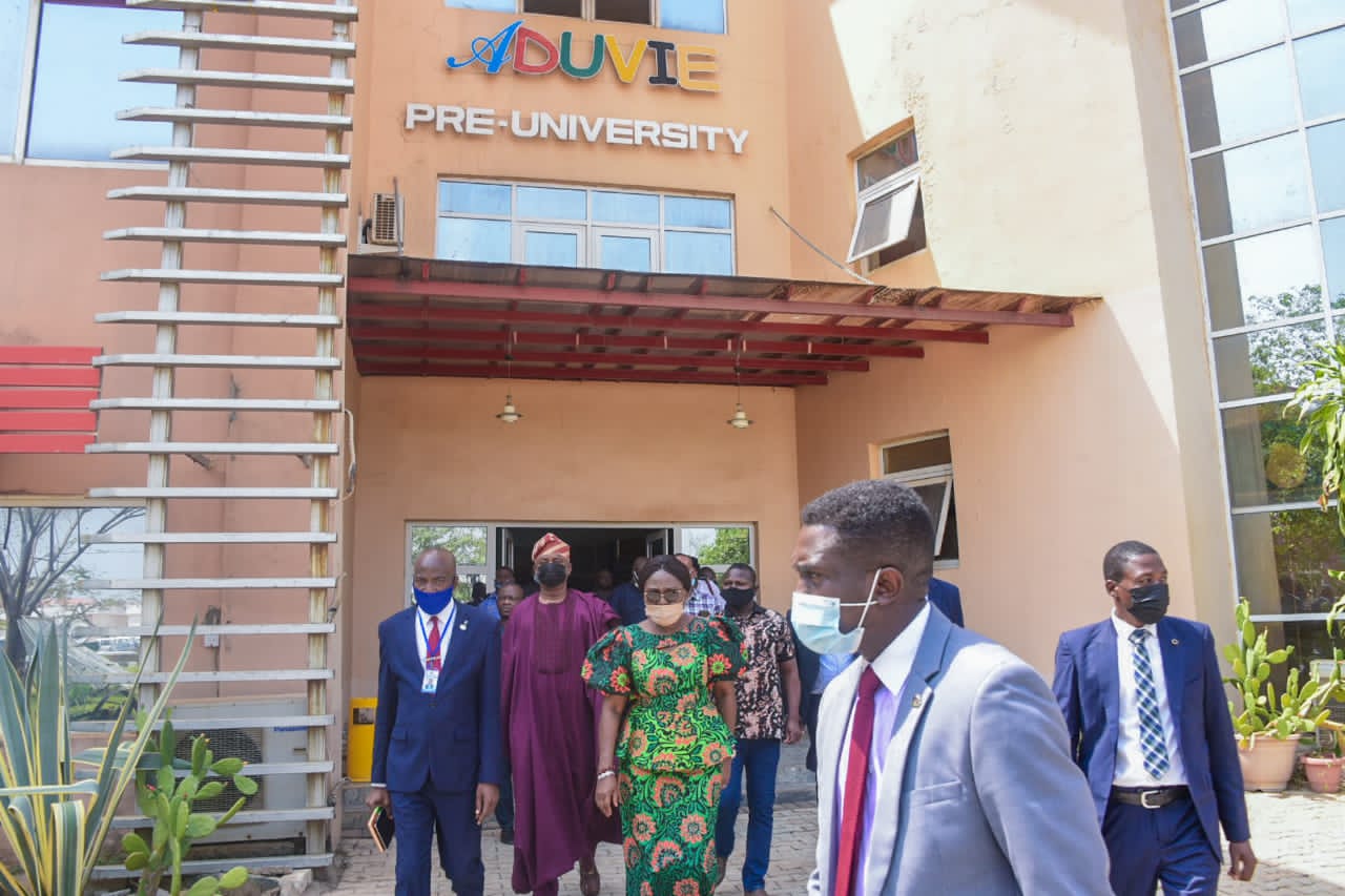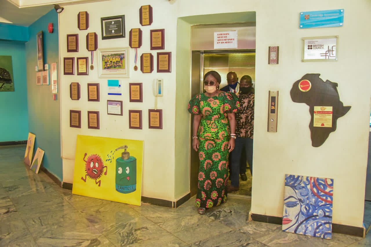 She was conducted round the school by the Head of the School, Mr. Abiodun Olusoji, and the Chairman of the Parents Teachers Association, PTA, Mr. Olabisi Omotoso, to inspect the facilities erected in the school including classrooms, laboratories, hostels, Computer based center, swimming pool, cafeteria among others.
