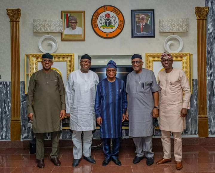At a meeting held at the Ondo Governor’s lodge, Asokoro, Abuja on Monday, the Chairman, Southwest Governors’ Forum and Ondo State Governor , Arakunrin Oluwarotimi Akeredolu, SAN, said the five Governors from the region elected under the APC platform converged to congratulate and felicitate their brother Governor, Oyetola, over his victory.