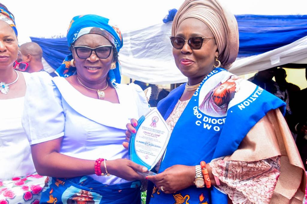 The highlight of the event was the presentation of merit award and conferment of honourary member of the CWO, St. Francis Xavier Catholic Church, Olaoluwa, Owo to Chief Anyanwu-Akeredolu in recognition of her sterling commitment to education, development and elevation of the status of women and girls in Ondo state and beyond.