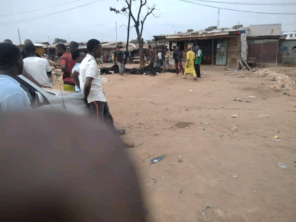 When our reporter visited the scene, the scorched tyres used in burning him could be seen while traders locked their shop in anticipation of any violence.