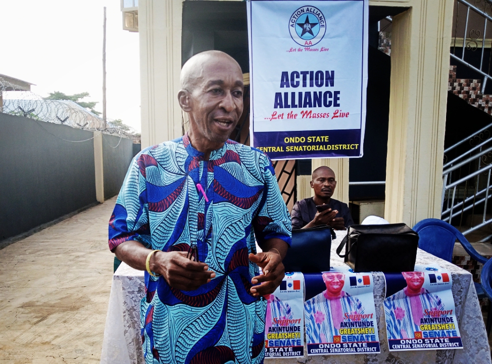 Mr. Akintunde Greatsheyi, has emerged as the Ondo Central senatorial district candidate of the Action Alliance party, for the 2023 General elections.