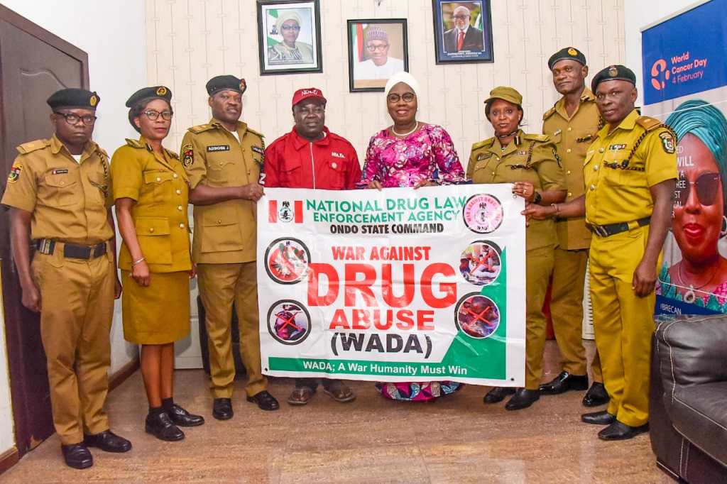 The NDLEA Commandant who informed Mrs Akeredolu that WADA was launched last year by the NDLEA Chairman to wage war against the epidemic that is consuming humanity, through sensitisation and persuasion, lauded the Ondo government for being one of the few States that set up State’s Drug abuse committee.