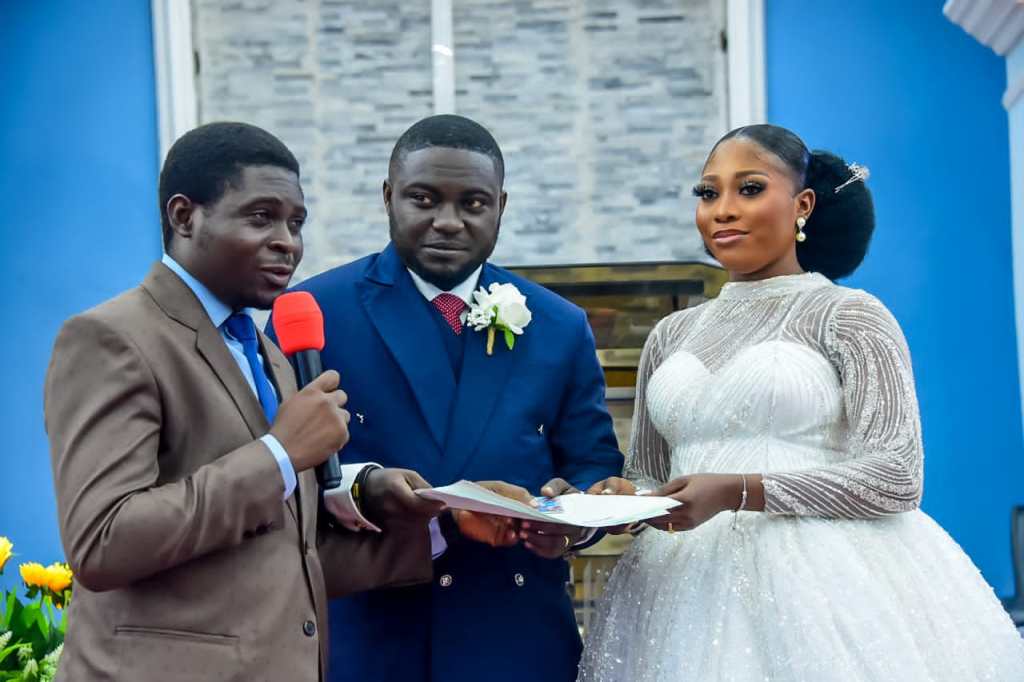 She congratulated the couple’s parents for witnessing the day, describing Marriage as a thing of joy for family and acquaintances and enjoined them not to interfere in their union but allow them to sort things out together as partners.