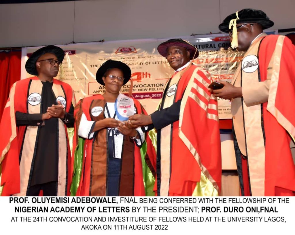 A renowned Professor of Yoruba Literature of Adekunle Ajasin University, Akungba-Akoko, Oluyemisi Adebowale, has been admitted to the College of Fellows of the Nigerian Academy of Letters (NAL).