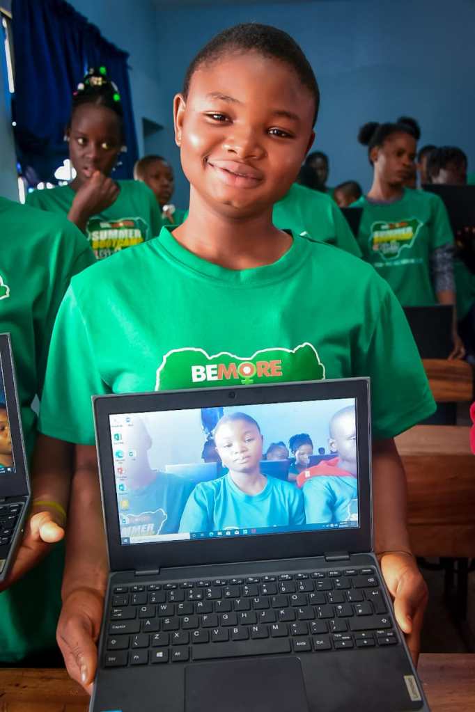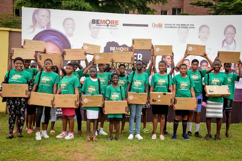 Participants at the ongoing 2022 Bemore Summer Boot Camp have joyfully received their brand new laptops from the wife of Ondo State Governor and founder of Bemore Empowered Girl’s Foundation, Chief Betty Anyanwu-Akeredolu.