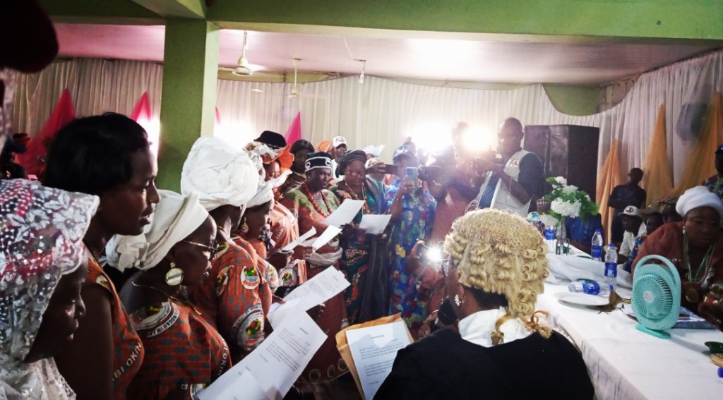 Supporters of the former Lagos State Governor and APC National leader, Asiwaju Bola Ahmed Tinubu in their hundreds stormed Adegbemile Press Centre, Ondo State for the inauguration of the Iyalaje/Iyaloja Network, Ondo State Chapter.