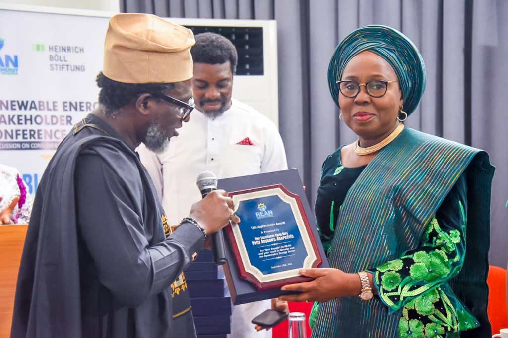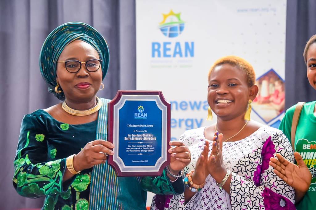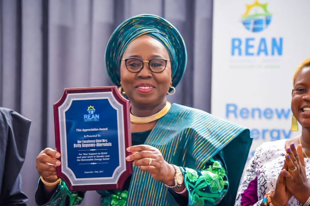 The Renewable Energy Association of Nigeria (REAN) presented Chief Betty Anyanwu-Akeredolu, with a special award of recognition for her outstanding contributions to the renewable energy sector and for her invaluable support for REAN over the years.