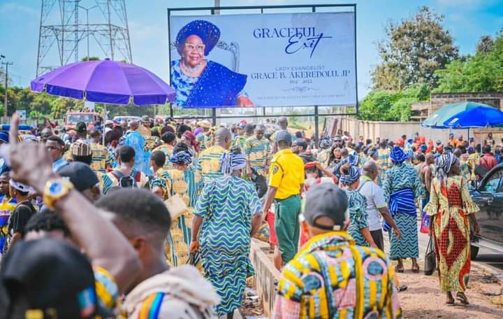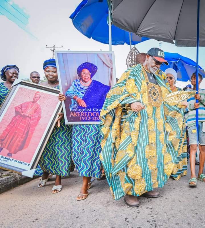 The ancient town of Owo in Ondo State was agog on Wednesday as the burial arrangements for late Lady Evangelist Grace Bosede Akeredolu JP, mother of the Ondo State Governor, Arakunrin Oluwarotimi Akeredolu,SAN, CON, commenced with the traditional Ajabue procession round the town.