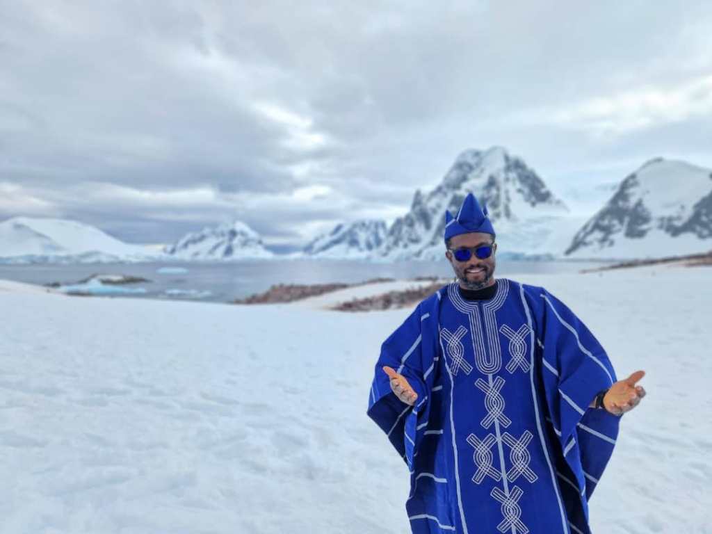 Osun state-born Olagunju, who is probably the first Nigerian to scuba dived in Antarctica, added humour to the expedition journey by showcasing his cultural background, wearing Aso ofi Agbada, a native attire known with the Yoruba people in the Southwest region of Nigeria.