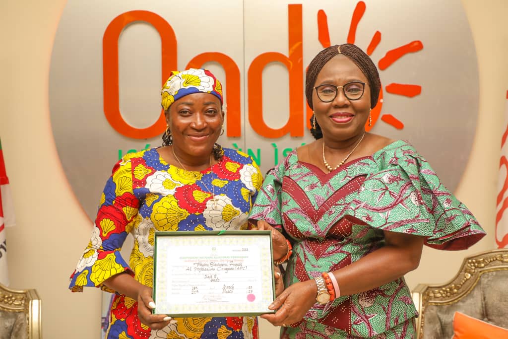 Earlier while presenting her certificate of return to the First Lady, the Lawmaker-elect, had appreciated the support given by the First Lady during the election processes, and for her commitment to ensure more female lawmakers were elected.