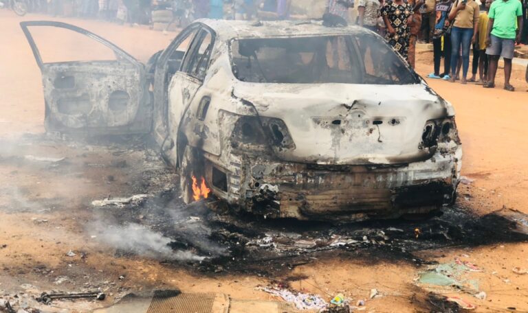 The PPRO said, “No one can confirm if the young man in question is an internet fraudster, there was an accident that led to the death of a motorcyclist, rather than people around to help, some resolved to Jungle Justice by killing the young man Olorunfemi Tope aged 35 who drove the vehicle and set the car ablaze.