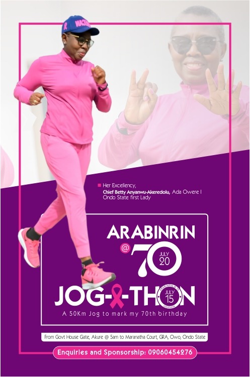 The Ondo First Lady had earlier announced July 15th for a pre-birthday event tagged “Jogathon”, before the main celebration which is July 20.