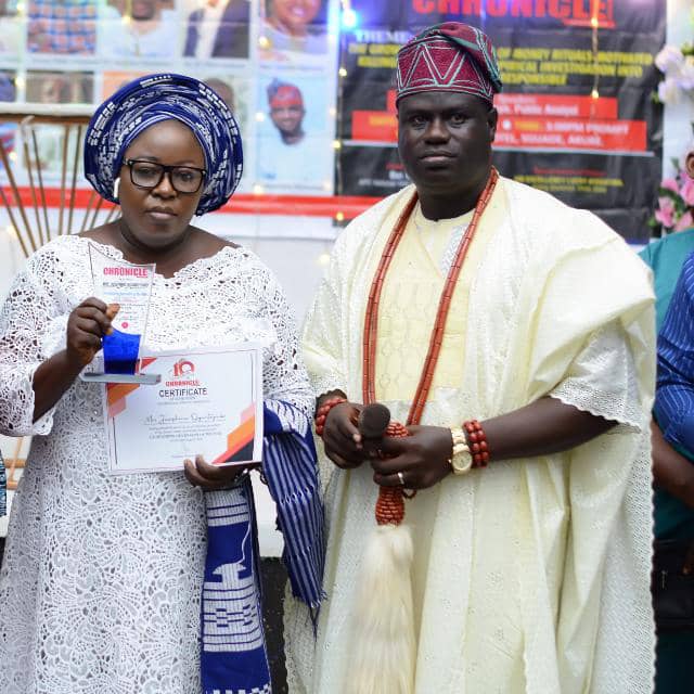 Oguntoyinbo was honoured on Sunday at the 10th anniversary of the Chronicle magazine, held at Sunbeth hotel, Akure, the state capital.