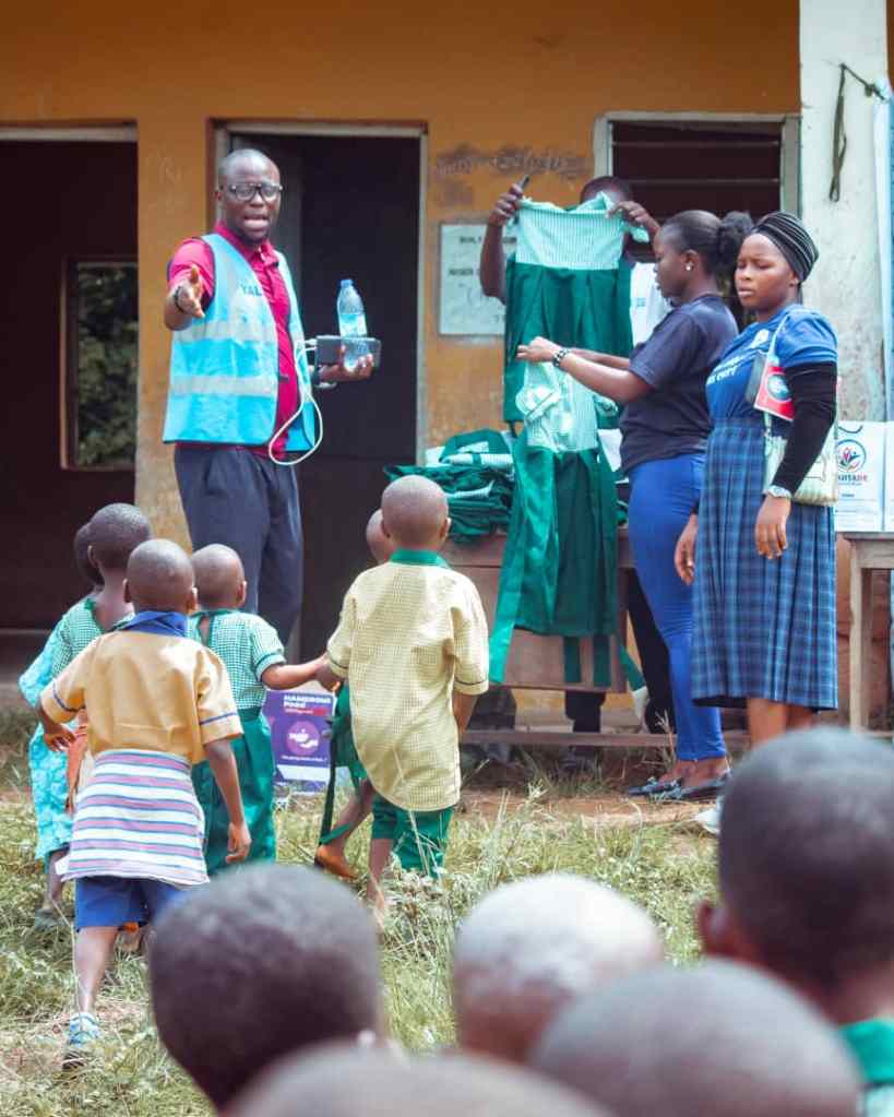 The group, in collaboration with Sojitade Foundation, Kids and Teens Resource Centre , Gbenga Fawehinmi Foundation, Rural Nurture Initiative and others, provided uniforms, sandals and socks, textbooks, notebooks and stationery to the students.