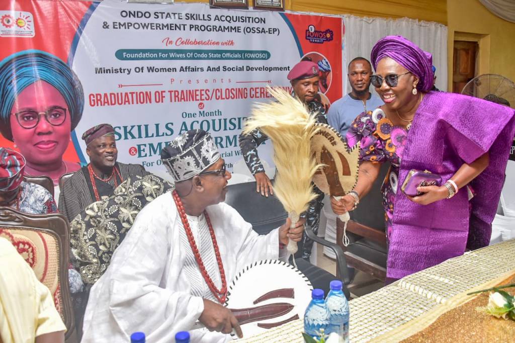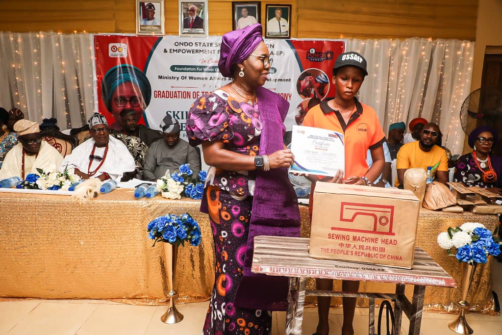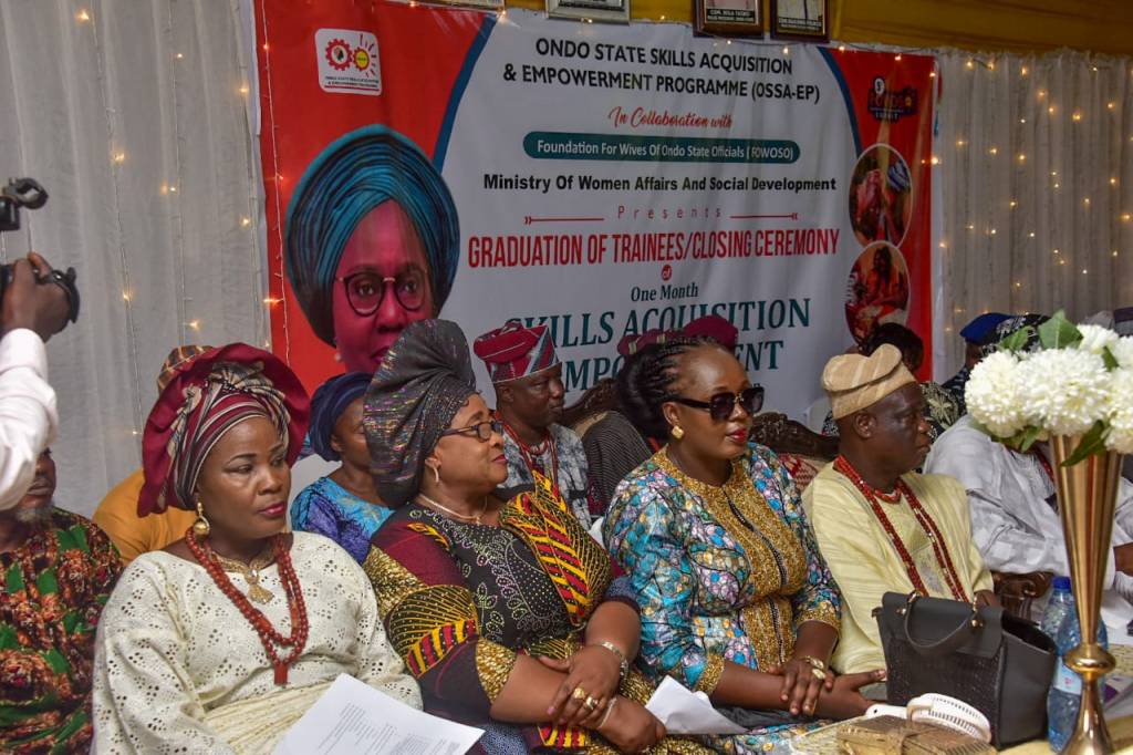 About 100 unemployed women selected across Ondo South Senatorial district, were on Friday, released to the Labour Market after completing one-month of rigorous Skills Acquisition training organised by the Wife of Ondo State Governor, Chief Betty Anyanwu-Akeredolu.