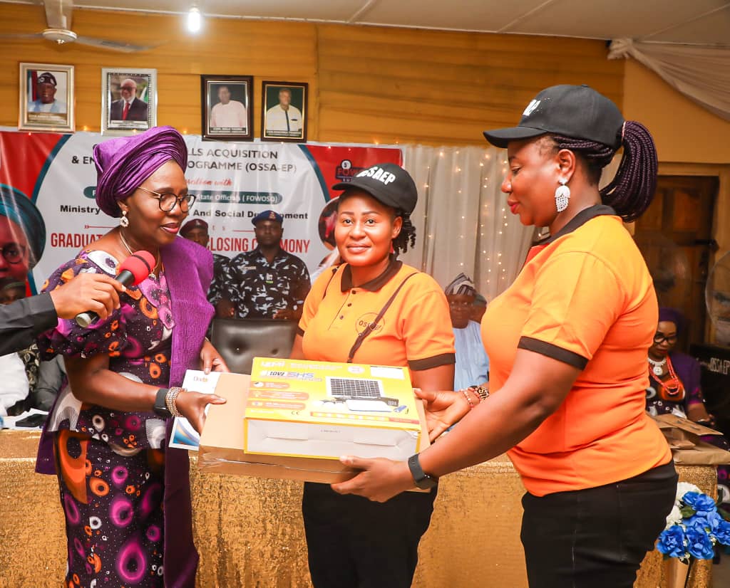 His words: ” To the graduands, I have just small words of advice, we’ve heard a number of historical antecedents of empowerment, where people are trained, given money to set up businesses, given equipment and materials to start their trade but this (OSSAEP) can be seen to surpass what we have seen all over the places, courtesy of mama FOWOSO.
