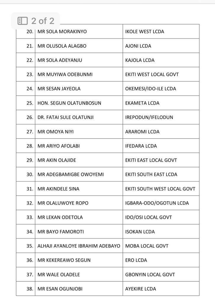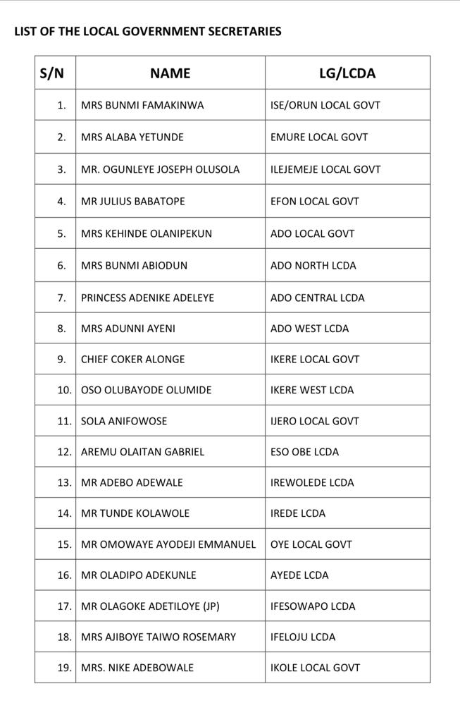 The Governor of Ekiti State, Mr @biodunaoyebanji has approved the appointment of secretaries for the 16 local government councils and 22 local council development areas in the state.
