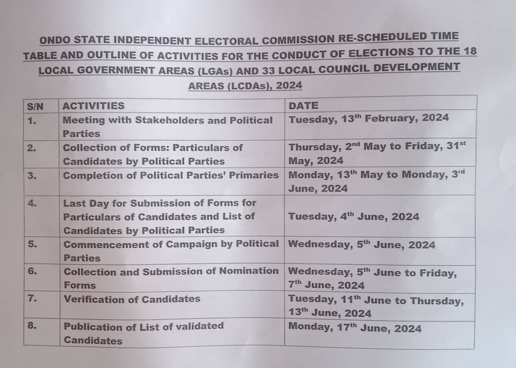 The Ondo State Independent Electoral Commission (ODIEC) has disclosed a new date for the local government election in the state.