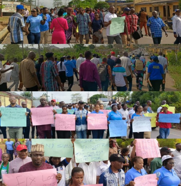 The State NLC Chairman, Comrade Victor Oladele- Amoko said the peaceful protest was to register the people’s grievances against poor policies of government and untold hardship facing the country.