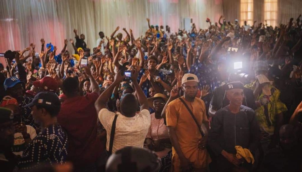 The entire political structure of the late Governor Akeredolu, from the unit, ward, and local government levels, gathered at the Aruwajoye hall, to welcome Akinterinwa’s campaign train.