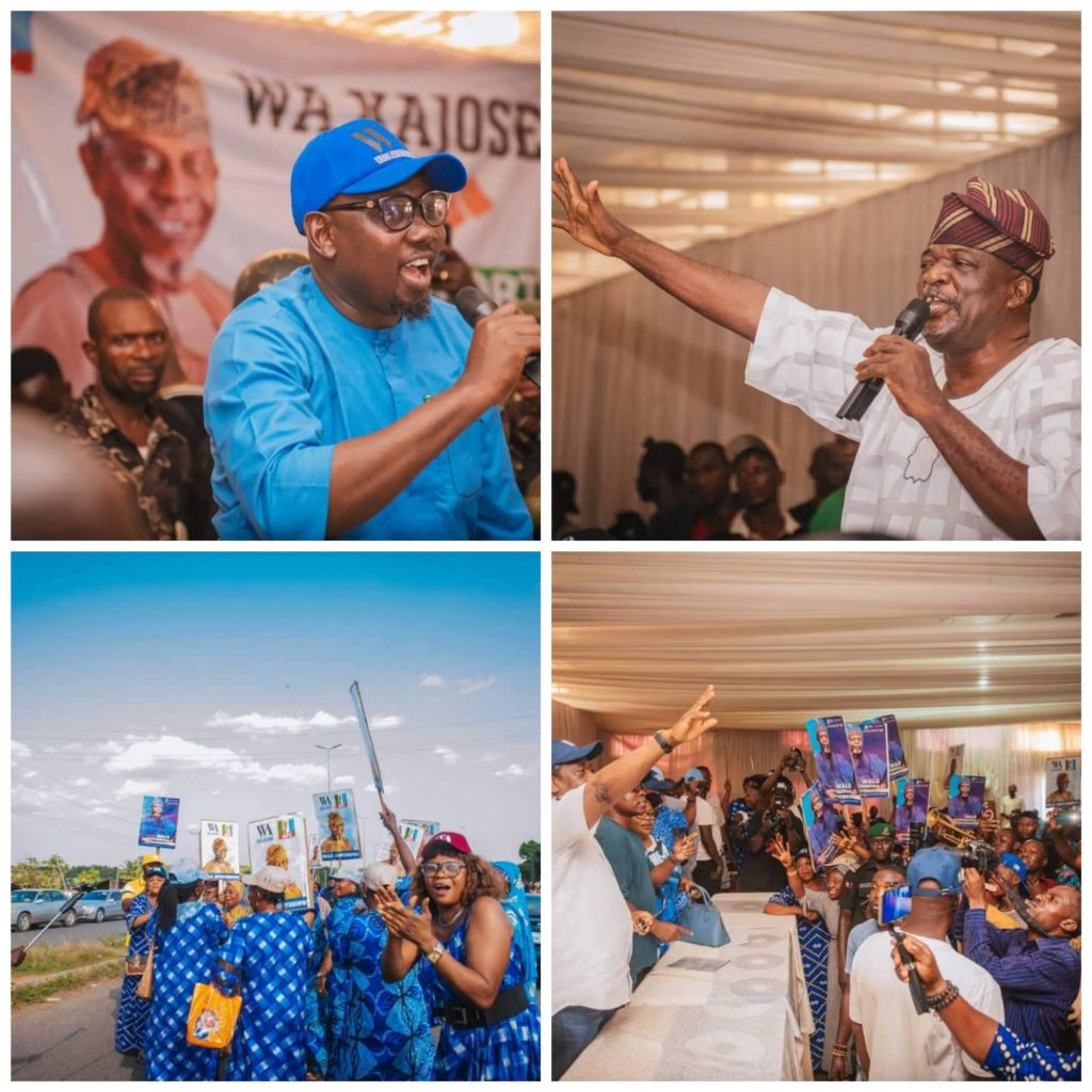 On the campaign train were; member of the House of Representatives, representing Oluji Oke-Igbo/Odigbo Federal Constituency, Festus Ayodele Adefiranye; members of the Ondo State House of Assembly in Odigbo 1, 2, and Ile-oluji/ Okeigbo, Hon. Tunji Fabiyi; Hon. Fasonu Oluwarotimi Babatunde; and Hon. Akinsuroju Akindolanii Nelson; former deputy speaker of the House, Rt. Hon. Fatai Olotu; former member of the House of Assembly, Hon.Olugbenga Araoyinbo, and his colleague, Hon. Abiodun Ogunbo (O ni Reason).
