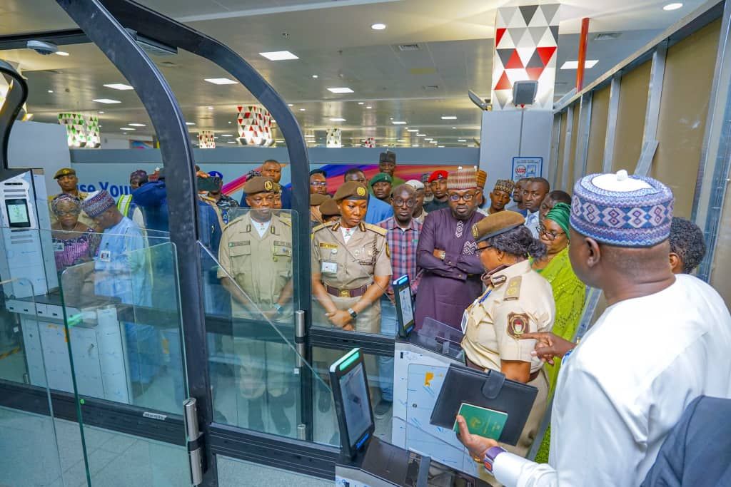 The Minister of Interior, Olubunmi Tunji-Ojo, on Friday, led a test run of the newly installed electronic gates (e-gates) at the Nnamdi Azikiwe International Airport in Abuja, affirming that the project was almost completed.