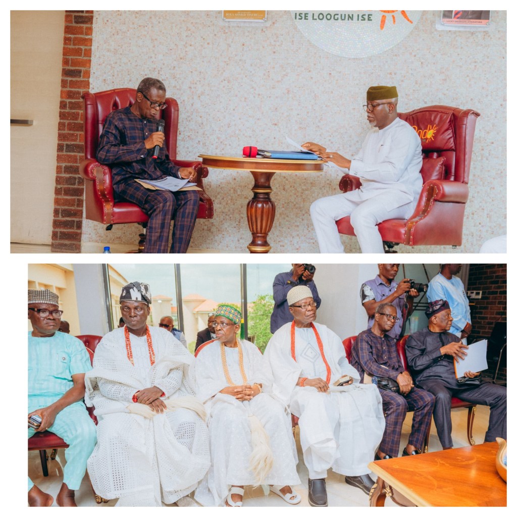 The delegation, led by Rtd Major General Joshua Adebayo Omosebi, included traditional rulers and business mogul, Chief Ade Ojo.