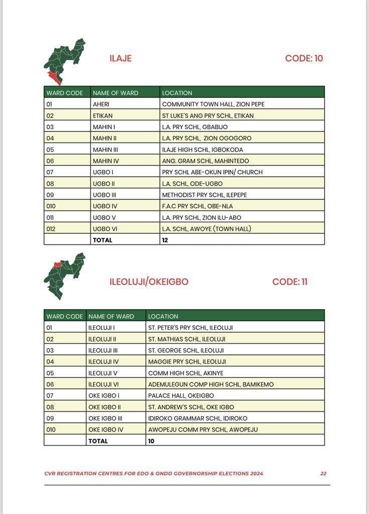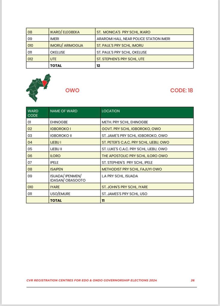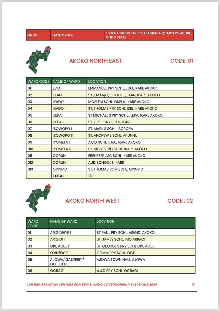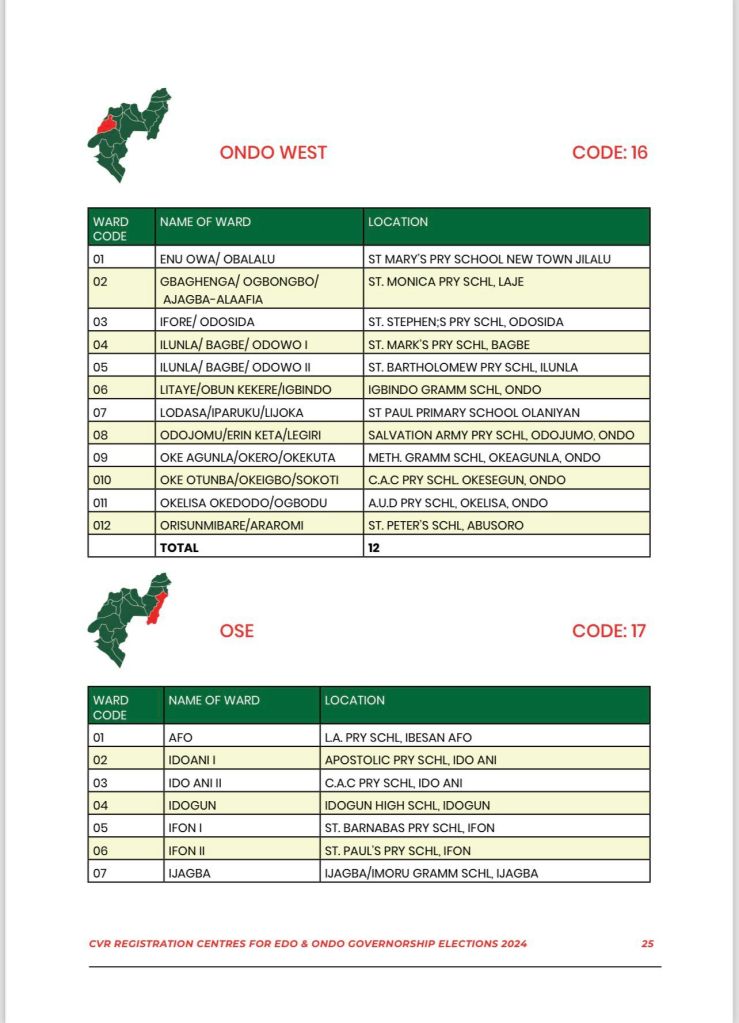 DESIGNATED CONTINUOUS VOTER REGISTRATION CENTRES IN ONDO STATE
