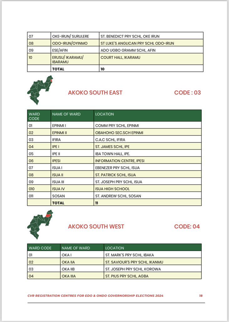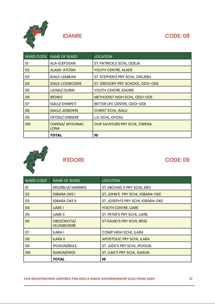 The CVR in Edo and Ondo States will take place simultaneously from Monday 27th May 2024 to Wednesday 5th June 2024 from 9.00am to 3.00pm daily, including the weekend.